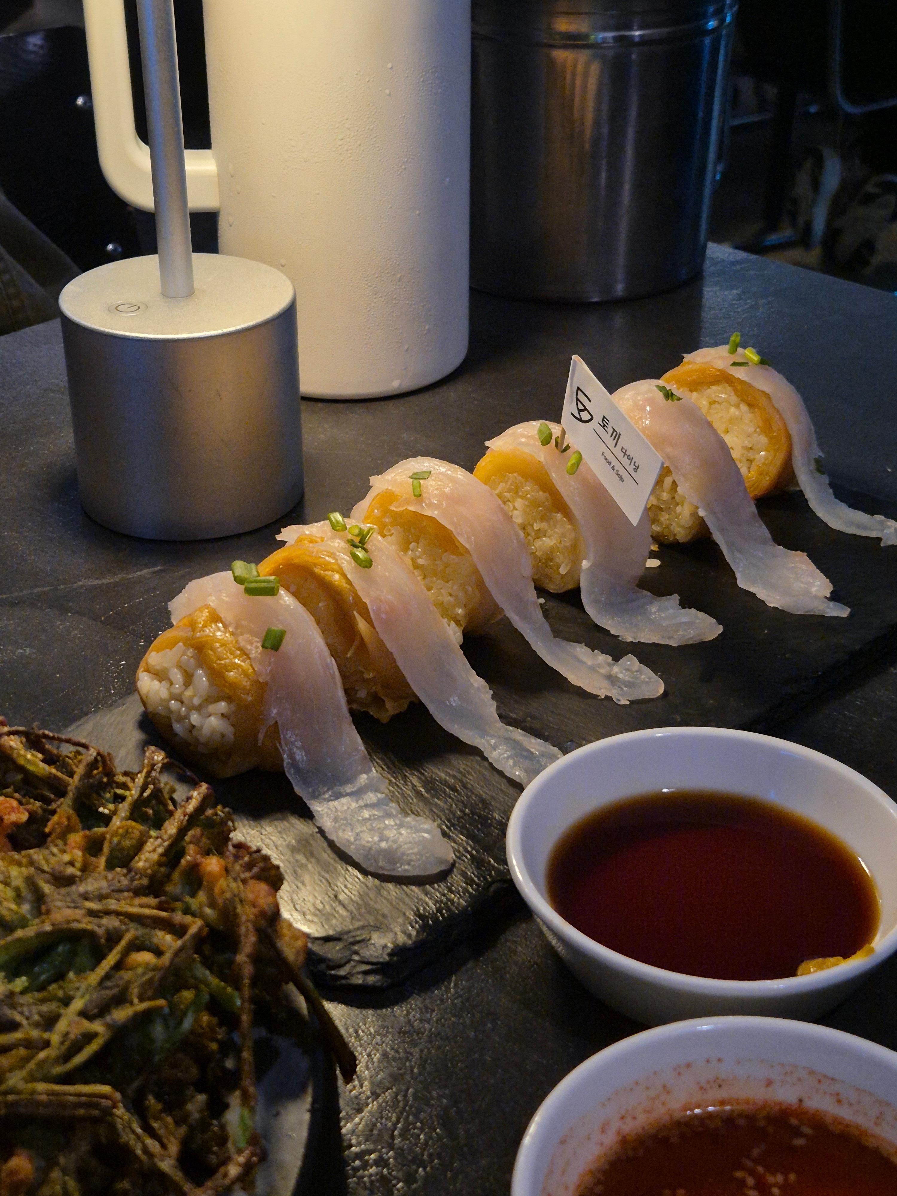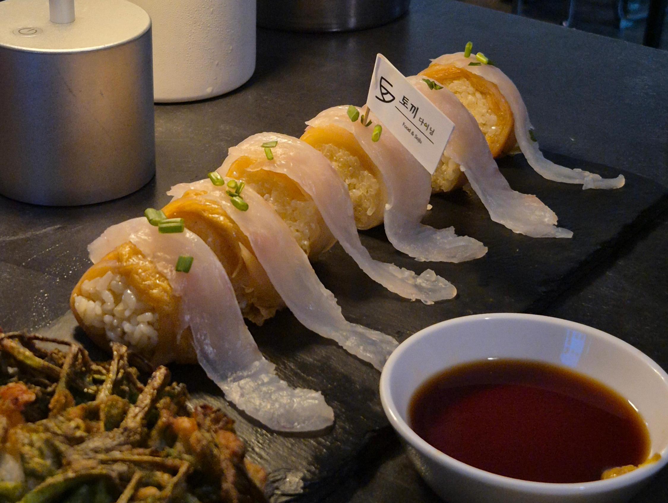 토끼다이닝 합정점의 묵은지 광어초밥은 꼭 추천드리고 싶어요.